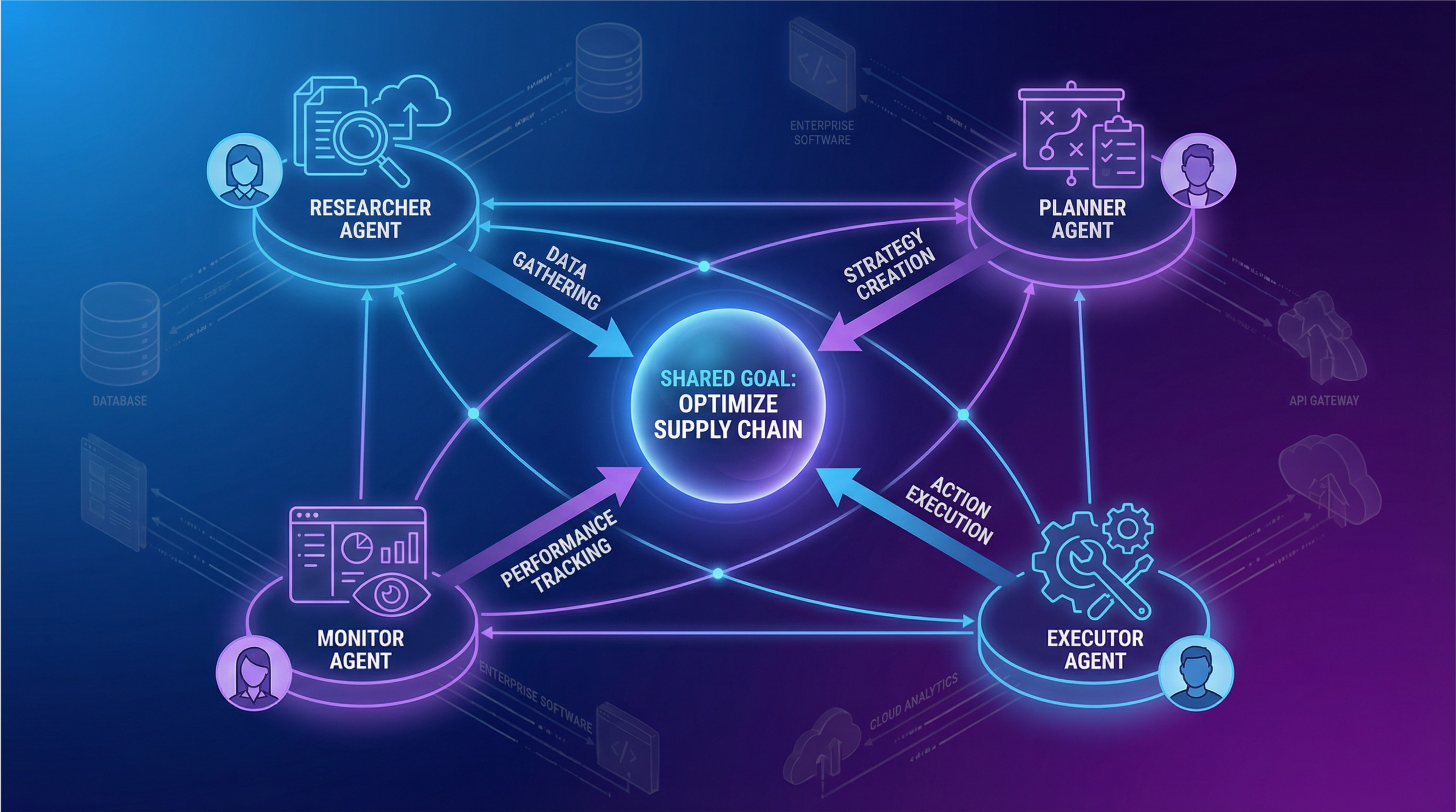 Natural Language Input: It all starts with a goal, often provided in natural language. This could be a high-level objective like "Reduce supply chain costs by 10%" or a specific instruction like "Monitor our top 5 competitors and report any price changes."